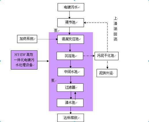 電鍍鋅污水處理的方式,由于人們的改革以及創新,已經衍生出多種多樣的處理形式,例如:樹脂交換反應處理法、電流分解處理法、化學法氣浮等等,都可以有效地將電鍍鋅污水進行即時處理。在上世紀九十年代,人們經過實驗得知,通過樹脂交換反應處理過的電鍍污水,不但可以將污染源頭進行遏制,反而,還會將其中的珍貴稀有金屬物質進行再度回收利用;電鍍鋅污水處理工藝如圖所示: